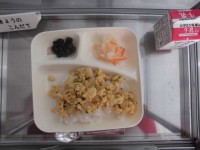 今日の献立は、学校給食献立コンクールで優秀賞を受賞した「こまつなっ葉めし、さけ...