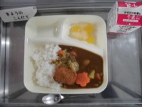 今日の献立は「カツカレーライス、フルーツゼリー」です。 1年生の入学お祝い献立と...
