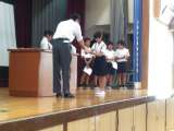 校長先生から夏休みの間のことや2学期にむけてのお話がありました。 みんなとても静...
