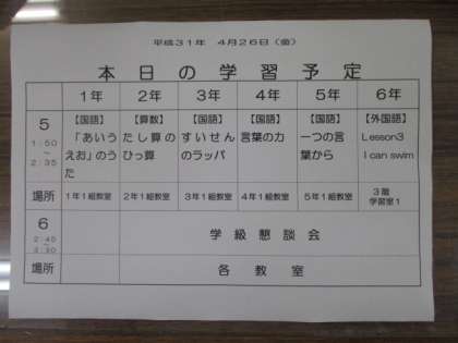 本日の学習参観の内容です。