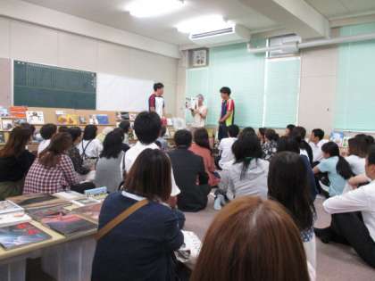 絵の本ひろば 公開日 2019/06/03 更新日 2019/06/03 学校日記 5月27日(月)28日(火)に加藤啓子先生をお招きし、「絵の本ひろば」を開催しました。城東小から校長先生が来られ子どもに対する指導を参観されていました。加藤先生は、子どもたちが自由に、おしゃべりをしながら、パラパラめくりながら絵本を楽しむことを大切にされています。27日午後4時からの講座には、保育所、幼稚園、近隣の小学校の先生方も来られました。実施にあたり、図書館補助員の大野さんありがとうございました。 いいね(0)