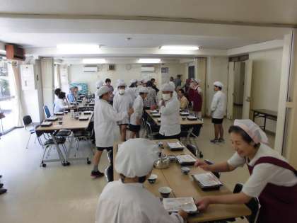 6月13日(木)に5年生は、第1団地で行われている食事サービスのお手伝いに行きました。これは5年生の総合的な学習の時間のテーマとしている「福祉」について体験学習を行うためです。お弁当や味噌汁の配膳を手伝いました。最後に「見上げてごらん夜の星を」をリコーダー演奏し、地域の方にも合唱していただきました。