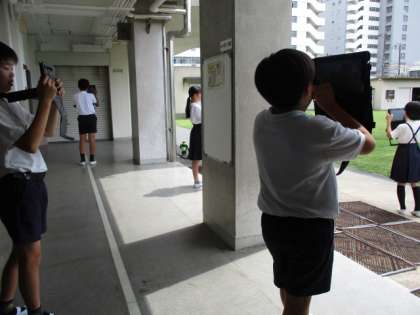 校内の様子をパシャリ 公開日 2019/06/17 更新日 2019/06/17 学校日記 金曜日の朝の会は、English Timeの時間です。7月5日(金)で9回実施となっています。子どもたちはノリノリでEnglishを楽しんでいます。校内で6年生がタブレットを持って撮影している姿を見つけました。学校の中の思い出の場所を撮影し、発表をするそうです。 いいね(0)