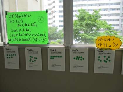 異年齢児童の仲間づくり 公開日 2019/07/03 更新日 2019/07/03 学校日記 毎週水曜日の午前8時30分から50分まで、集会委員会の活動として児童集会を行っています。ねらいは異年齢児童の仲間づくりを深めるためです。この写真は、「学校かくれんぼ」の様子です。学校のどこかに隠れている集会委員を見つけると、シールがもらえます。ルールはわくわく班で歩いてさがすこと。時間は10分です。「もういいかい」「もういいよ」。さあ、スタートです。 いいね(0)