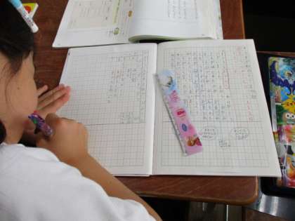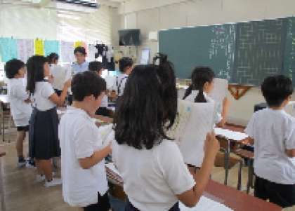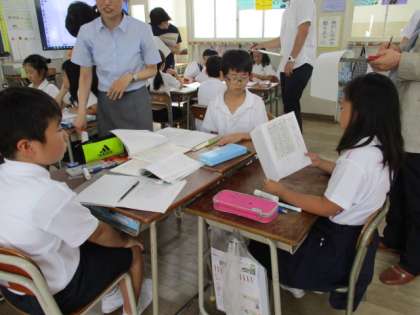 教師が、子どもたちにどのような指導をすると読む力や自分の考えをまとめ、発表する力が付くかということで、研究授業を行っています。3年生は「ゆうすげ村の小さな旅館」の教材で研究授業を行いました。子どもたちは、本時の課題を解決するために、まず自分で読み取ったことをノートに書き、次にグループで交流し、最後にみんなで交流し、読みを深めていました。本校では、このように国語科を中心に主体的 対話的 深い学びに向けて進めているところです。