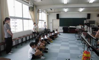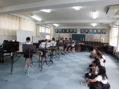 校内パシャリ5 公開日 2019/07/17 更新日 2019/07/17 学校日記 7月16日(火)6校時、4年生が音楽の時間に3年生を招待し「大きな古時計」の合奏をしました。1学期の音楽の学習の締めくくりにふさわしい合奏でした。3年生の聴く態度も素晴らしいです。3枚目は、午後6時30分より行われた盆踊りの練習の様子です。かわいい1年生が参加してくれました。 いいね(0)
