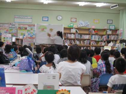図書お楽しみ会と水泳大会出発 公開日 2019/07/30 更新日 2019/07/30 学校日記 7月29日(月)、恒例の図書ボランティアさんによる「お楽しみ会」が行われました。ペープサートによる絵本の読み聞かせやフルートの演奏をしてくださいました。フルートに合わせて自然にオモチャノチャチャチャの合唱となり、ここでも森小らしさを感じました。3枚目は7月30日(火)、水泳記録会出発の様子です。 いいね(0)