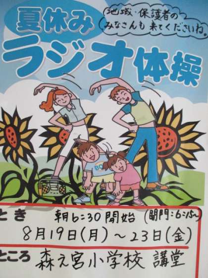 安全で楽しい夏休みにしてください。 公開日 2019/07/31 更新日 2019/07/31 学校日記 明日より、画像の送信を休みます。安全に気を付け楽しい夏休みをお過ごしください。また、子ども会の地蔵盆やPTAの夏休みラジオ体操にはできる限り参加してほしいと思います。 いいね(0)