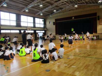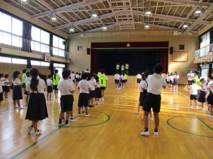2学期初めての児童集会はアツーイ集会。おんぶ競争です。「おんぶ」に慣れていない子どもはやや緊張した表情をしていましたが、1回戦後、集会委員が「おわってください」と言うと「エーッ」という声が聞こえてきました。