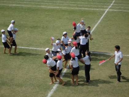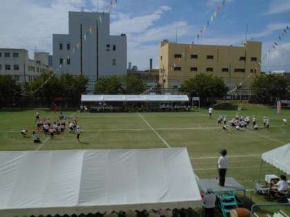 低・中・高学年の団体競技の様子です。 公開日 2019/10/01 更新日 2019/10/01 学校日記 プログラム6番、3・4年生の「台風の目」は白が勝ちました。プログラム15番、高学年の騎馬戦!「〜森之宮の陣〜」は赤が勝ちました。プログラム20番、1・2年の「ね・ら・い・う・ちGO!」は白が勝ちました。今年の得点発表では、白の勝ちとなったのですが、どの団体競技でも、白組、赤組ともみんなで力いっぱい競技できました。 いいね(0)