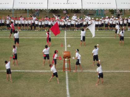 応援団 公開日 2019/10/02 更新日 2019/10/02 学校日記 今年も応援団の団長・副団長・太鼓・旗・笛係の26名は、紅白の応援合戦をはじめ応援ダンス、応援歌によって運動会を盛り上げました。下学年の子どもたちにとって応援団に入ることは、憧れの1つになっているようです。昨年より一回り大きい大玉を購入し、大玉はこびをしました。最後のゴールは応援団の役割の仕事になっています。 いいね(0)