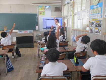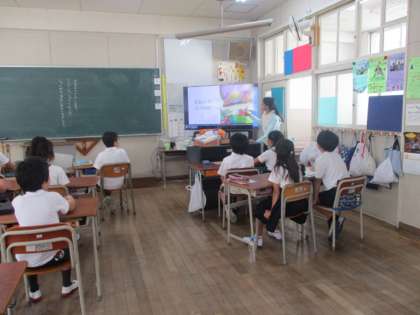 イングリッシュモジュールタイム 公開日 2019/10/07 更新日 2019/10/07 学校日記 本校では清掃活動後の午後1時45分から5校時が始まる午後1時50分までイングリッシュモジュールタイムの時間を設け英語活動を実施しています。画面を見ながら単語や短い文を聞き取り英語の発音に慣れてきています。 いいね(0)