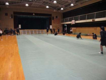5・6年生児童によってシート敷きや長椅子並べ、楽器運びが終わり講堂の準備ができました。過日保護者の皆様には、学習発表会のプリントを配布しました。プリントに書いている時程通りに進むよう指導していますが、10分程度の違いがあるようです。ご了承のほどよろしくお願いします。