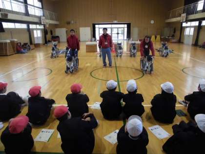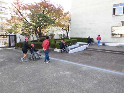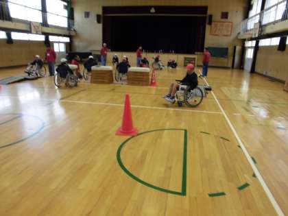 5年生の総合的な学習のテーマは「福祉」です。大阪市立心身障がい者リハビリテーションセンターの方による車いす体験学習を実施しました。はじめに車いすの使い方について説明を受け、次に、エレベーターや段差のある校内の廊下を利用して、車椅子に乗ってみたり介助をしたりしました。想像した以上に、緊張したそうです。