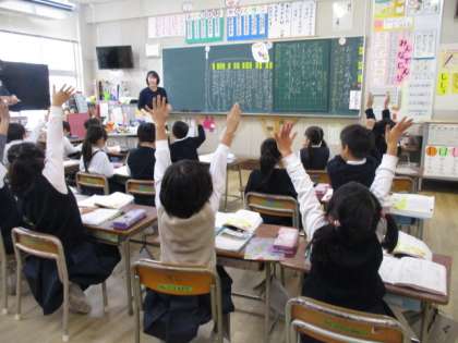 12月6日(金)に1年生は国語科「おとうとねずみ チロ」の研究授業をしました。子どもたちは音読ではチロになりきり気持ちを込めて読めていました。その後の視写では、一文字一文字書くのではなくことばとしてノートに書いていました。課題についての友だちとの交流や全体での交流では、根拠をもとに発表し自分や友だちとの考えを比べながら学習を深めていました。子どもたちにより主体的に学習が進められていました。
