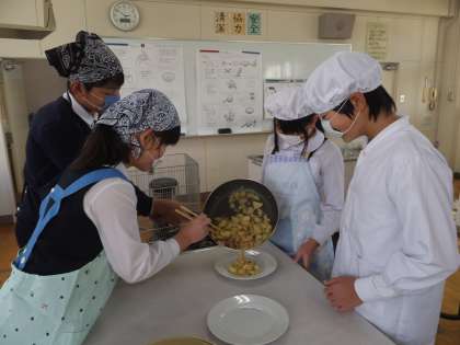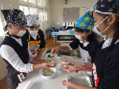 6年生調理実習 公開日 2019/12/11 更新日 2019/12/11 学校日記 6年生は家庭科の単元「くふうしようおいしい食事」の学習で、グループごとにいろいろなおかずの調理に挑戦しました。シャーマンポテトやベーコン入りポテトハンバーグなど、教科書のおかずの例をもとに作りました。 いいね(0)