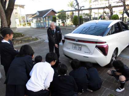 5年生はトヨタ原体験「くるままるわかり教室」出前授業を実施しました。 公開日 2019/12/17 更新日 2019/12/17 学校日記 12月16日(月)、子どもたちはゲームの中で自動車会社の経営者となり、車の生産や販売を通して利益を上げながら、さらに環境を守るためにはどのようにするとよいかの学習をしました。自然エネルギーの活用や「エコ カー」の開発と環境問題について考えさせられる学習でした。最後に「エコ カー」の実物を見せてもらいました。 いいね(0)