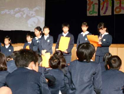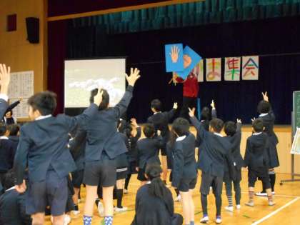 「なかま集会」をしました。 公開日 2019/12/25 更新日 2019/12/25 学校日記 多文化共生社会が求められる時代になっています。本校には、渡日や外国籍の子どもがいますが、登校したその日から、学級の子どもたちはジェスチャーをしながらすることを教える姿が見られ、みんな本当になかよく生活しています。「なかま集会」では、中国のよさを紹介したり、日本の「グー チョキ パー」を中国語で「シートゥ チェンダオ プー」をしたりして楽しい集会をしました。 いいね(0)