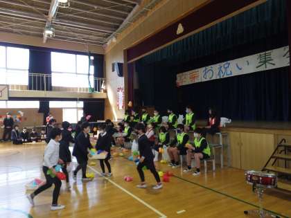 卒業お祝い集会の様子 公開日 2021/03/05 更新日 2021/03/05 学校日記 3月3日(水)に実施された卒業お祝い集会の様子です。2年生は切り絵のしおりをプレゼントし、紙の花でお祝いをしているところです。4年生はプラバンのプレゼントでした。5年生は一人ひとりへのメッセージを伝えていました。 いいね(0)