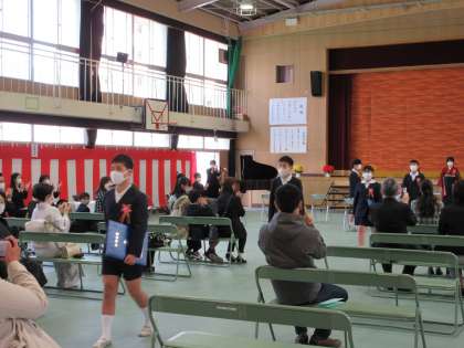 第42回卒業式の様子 公開日 2021/03/19 更新日 2021/03/19 学校日記 コロナ禍の中でいろいろ規制のあった学校生活でしたが、子どもたちは次第にそって精一杯自分の力を発揮し、立派な卒業式を終えることができました。 いいね(0)