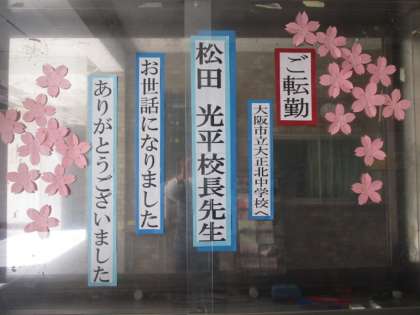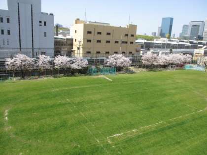 運動場はみどりいっぱいの芝生が広がっています。そして、淡いピンク色のさくらの花が満開となっています。入学式までこのまま咲いていてほしいと願うばかりです。