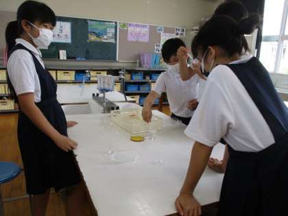 6年理科学習の様子 公開日 2021/05/18 更新日 2021/05/18 学校日記 ヒトや動物の体の単元の学習で、食べ物は口の中でどのように変化するのだろという課題で実験をしていました。子ども達は自分の唾液を綿棒に吸い込ませ、でんぷんが変化することを調べていました。 いいね(0)