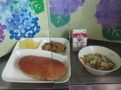 本日の給食献立は黒糖パン 牛乳 カレードリア 豚肉とキャベツのスープ りんご(カット缶)です。ドリアはライスグラタンともいいます。本日はカレールウの素やクリームなどを使ったドリアです。