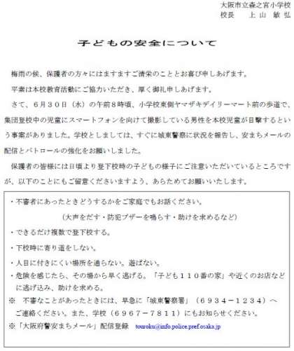 本日「子どもの安全について」の手紙を配布しています。各学級では、子どもたちに手紙に書いていることを指導し下校しました。ご家庭でも子どもとしっかり話し合っていただきますようよろしく願します。