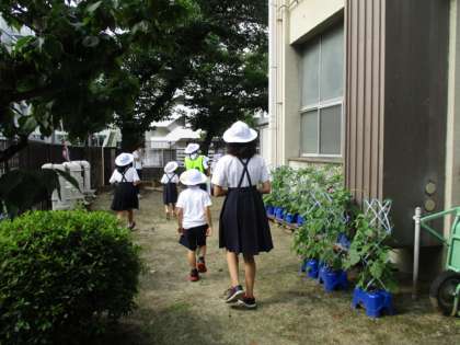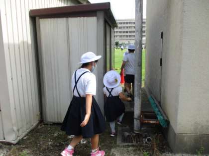 この日の児童集会は「学校かくれんぼ」です。縦割り班のみんなでかたまって、歩いて集会委員のおにを探します。見つけると集会委員の子どもからシールをもらえます。どの班もルールを守り、かくれんぼを楽しんでいました。
