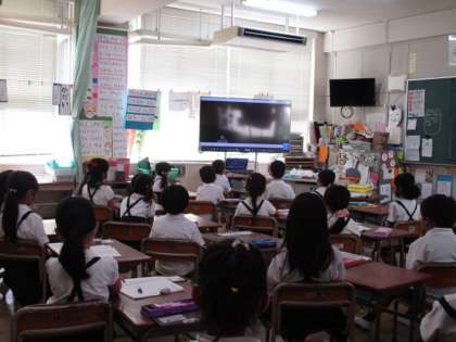 その後、生活指導の先生より夏休みの安全な過ごし方について放送で話されました。最後に1学期がんばったことの発表ビデオを視聴しました。子どもたちは、しっかり発表できていました。