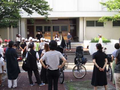 全てのスケジュールを予定通り終えて子どもたちが帰ってきました。帰校式では、役割の子どもが、みんなで協力して、ルールを守り活動したことをあいさつとして発表していました。とてもよい体験学習となりました。