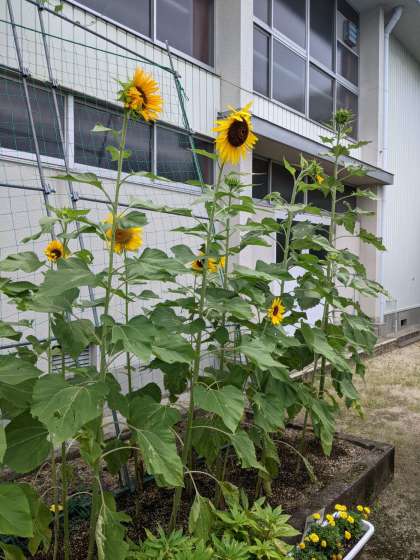 校庭の「ひまわり」や「ひょうたん」も、大きくなってきています!