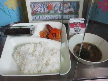本日の給食の献立は、ごはん 牛乳 酢豚 中華みそスープ 焼きのりです。
