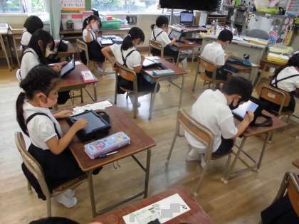 1年生はパソコンを開きデジタルドリルが使えるように練習していました。3年生は算数で、数の大きさ比べの学習をしていました。
