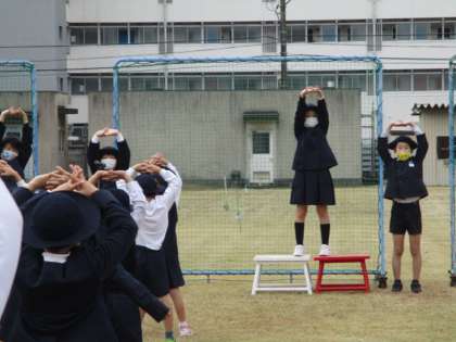 全校朝会で姿勢体操をしました。 公開日 2021/11/08 更新日 2021/11/08 学校日記 保護者の皆様にご協力いただいた、「学習と生活のアンケート」結果では、「よい姿勢に気を付けている」の項目に課題がありました。そこで学校では、健康委員会活動の取り組みの1つとして「姿勢体操」をつくりました。本日の全校朝会の場で音楽に合わせてみんなでしました。 いいね(0)