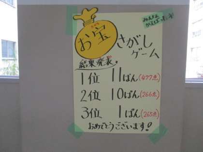 児童集会でした「宝さがし」の結果が掲示されていました。