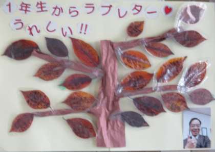 正門を入ると秋色に染まっています。が、・・・ 公開日 2021/11/24 更新日 2021/11/24 学校日記 学校で紅葉を楽しめる季節になりました。なん色の秋色にそまっているかなあと思いにふける時もありますが、現実はきびしいものがあり、写真のように毎朝管理作業員さんが掃除に明け暮れています。さて、紅葉の美しさにひかれてか、1年生が校長先生にラブレターを葉っぱに書きプレゼントしていました。「いつもわたしたちをみまもってくれてありがとう」と。 いいね(0)