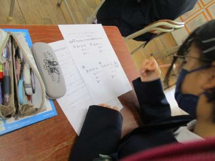 森小は子どもたちの希望により数学の授業をしました。小学校で学習している正の数に対して負の数を取り入れた計算をしました。正の数はアンパンマンの仲間、負の数はバイキンマンの仲間という子どもたちに身近なキャラクターを使って教えていただきました。