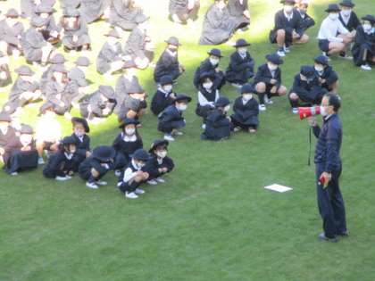 午前9時28分頃地震がありました。学校では、数分間様子をみてすぐに運動場に避難しました。午前9時50分頃から通常通りの学習をしています