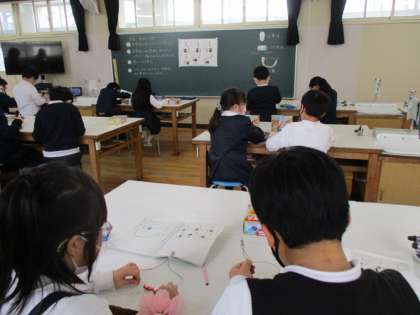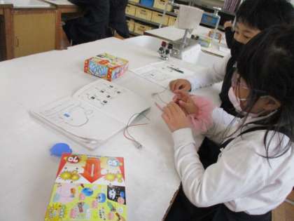 3年生は理科で「明かりをつけよう」の学習をしていました。豆電球をどのように乾電池につけると豆電球がつくかをいろいろ工夫して調べていました。
