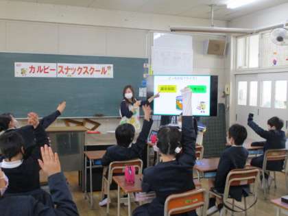 2月24日(木) 5年生出前授業 公開日 2022/02/24 更新日 2022/02/24 学校日記 5年生は「カルビー出前授業」を実施しました。賞味期限(すぎるとおいしくない)と消費期限(すぎると食べられない)の違いや、袋に表示している栄養成分の見方、1日に摂る塩分の量等いろいろな学習をしました。 いいね(0)