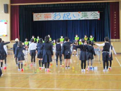 卒業お祝い集会の様子 公開日 2022/03/04 更新日 2022/03/04 学校日記 2年生はイケイケ6年生をテーマに感謝のことばを伝えていました。プレゼントは万華鏡でした。3年生は「ともだちになるために」を手話で伝え、手作りの花束を贈っていました。4年生は感謝の気持ちを呼びかけで伝え、プラバンを作って送っていました。 いいね(0)