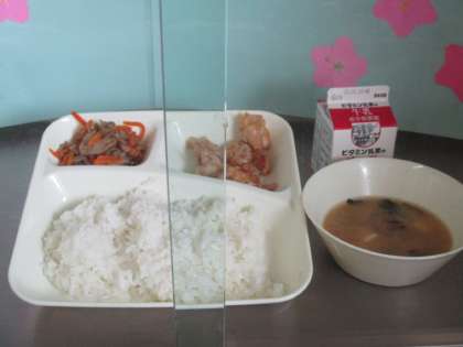 本日の献立は、ごはん 牛乳 鶏肉のしょうゆマヨネーズ焼き みそ汁 きんぴらごぼうです。