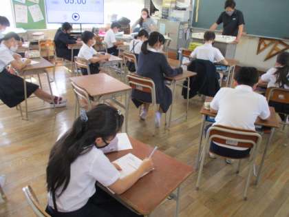 森之宮小学校では毎週木曜日の朝の時間を、スキルアップタイムとして活用しています。主に学習した内容の復習プリントなどに取り組む時間です。限られた時間ですが、どの学年の児童も集中して取り組む様子が見られました。