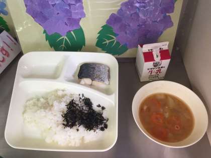 今日の給食は、ごはん、牛乳、さごしの塩焼き、みそ汁、牛ひじきそぼろ、です。「さごし」はスズキ目サバ科で、「さわら」の幼魚です。「さごし」は、ブリなどでも知られる出世魚の仲間です。 出世魚で、40〜50cmの個体が「さごし」、50〜60cmは「やなぎ」、60cm以上で「さわら」とサイズによって呼び方が変わります。今日は、塩焼きで調理されています。身もやわらかく、あっさりしています。