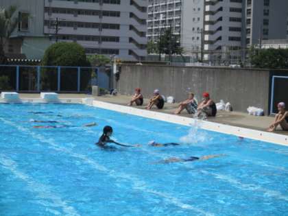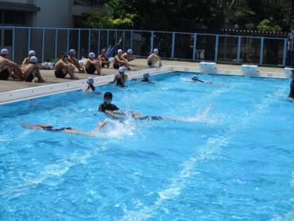 プール水泳日和(5・6年生) 公開日 2022/06/24 更新日 2022/06/24 学校日記 今日は朝から気温も高く、子どもたちはプール水泳の時間を楽しみにしていました。まずはけのびの練習。背筋を伸ばして壁を蹴り、力を抜きながら浮力に身を任せます。 続いてクロールの練習に移りました。腕の回し方とそのポイントに注意しながら真剣に取り組みました(^O^)/ いいね(0)