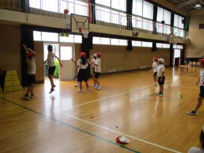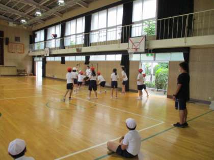 スポーツクラブは講堂でバスケットボールのゲームを行っていました。4年〜6年の混合チームで対戦していました。学年関係なく声を出し合いながらチームプレーを意識して、楽しんでいました☺