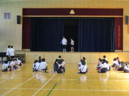 全部で12の班がありますが、半分は運動場、もう半分の班は講堂に分かれて楽しみます。