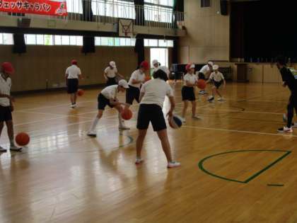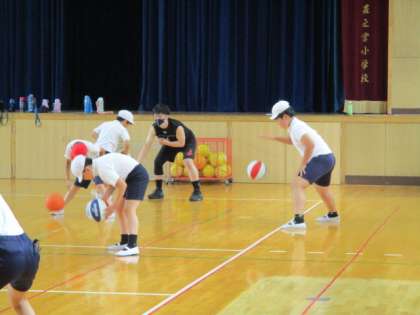 今日は夢授業(出前授業)でバスケットボールチームの大阪エベッサの選手の方に来ていただき、バスケットボールの基本や楽しさについて教えていただきました。昨年度に引き続き、エベッサの方に来ていただいたことは、子どもたちにとって良い思い出に残ると思います(^^)