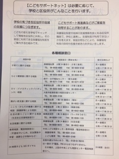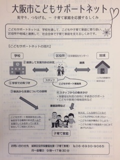 城東区役所より、「こどもサポートネット」の案内チラシが届きました。子育てで何か相談したいこと、聞きたいことがありましたら、ご活用ください。
